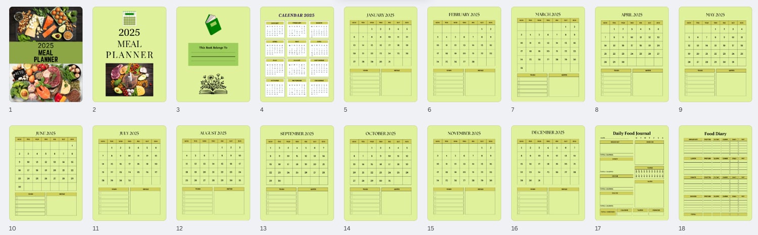 Transform your relationship with food planning from stressful to streamlined with this beautifully organized system that includes full 2025 calendars, daily food journals, weekly meal planners, grocery lists, recipe organizers, and even specialized keto tracking pages. π